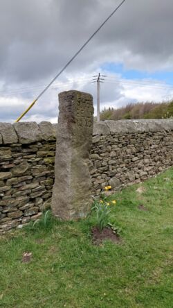 Signs of it having been used as a gatepost can be seen on the East face which also bears a pointing hand and the date 1711.